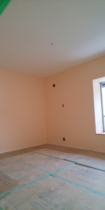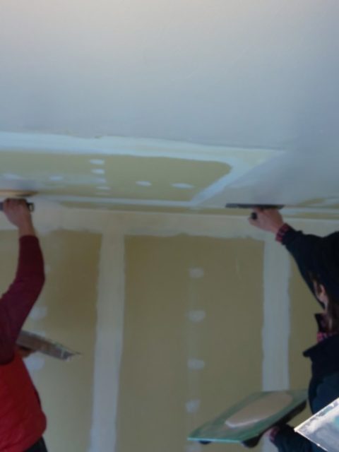 今回はフラット仕上げなので塗り付けたあとからコテで波をけしていきます。